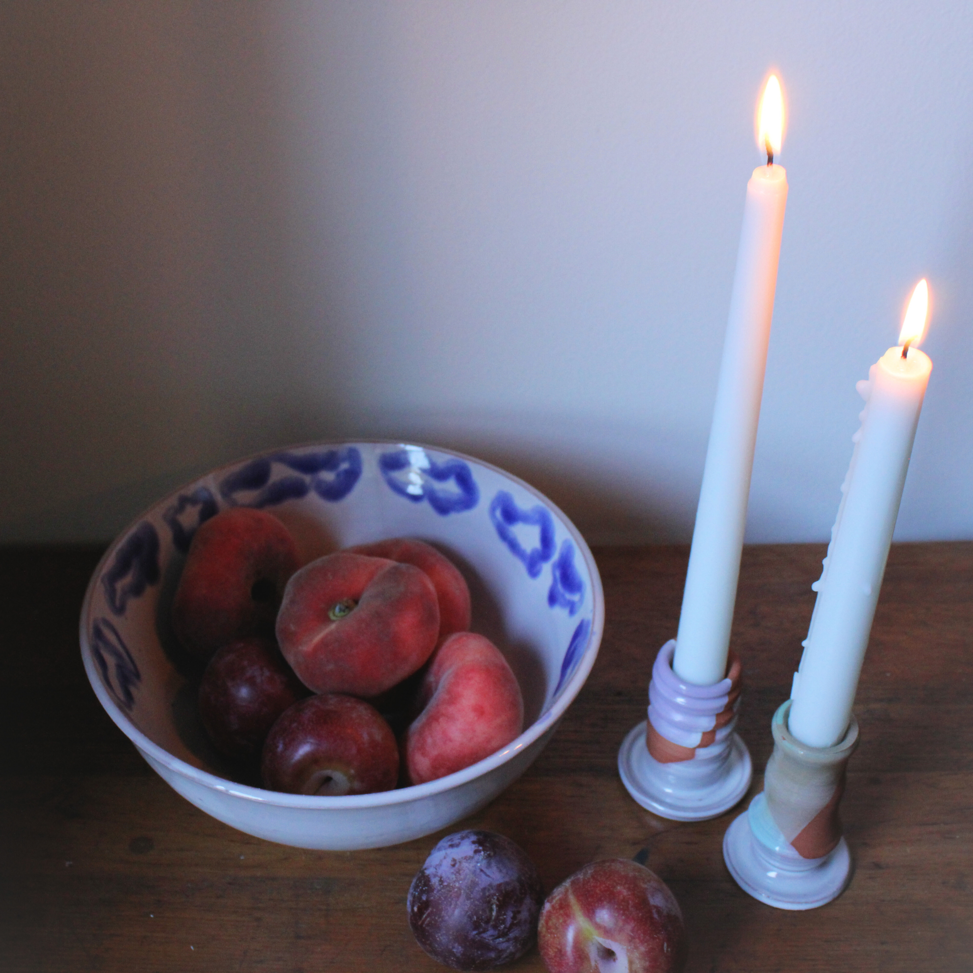 Terracotta bowl with white & blue glaze. Food, dishwasher, and microwave safe.